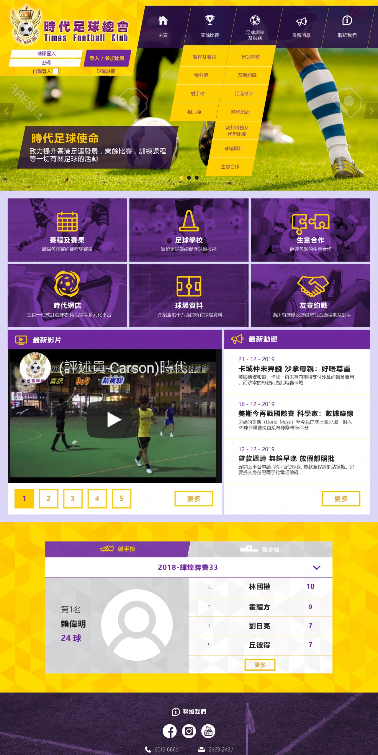 Responsive Web Design, Content Management System (CMS), Football Match Information and Application, Online Payment (Paypal), Membership System